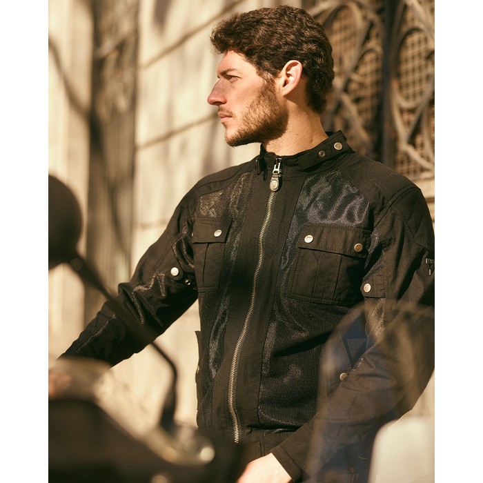 Το By City Teneree Venty IV είναι ένα μπουφάν μοτοσυκλέτας σχεδιασμένο για αναβάτες που αναζητούν δροσιά, άνεση και ασφάλεια, ειδικά τους ζεστούς μήνες. Ο συνδυασμός διάτρητου mesh υφάσματος με κερωμένο βαμβάκι εξασφαλίζει υψηλή διαπνοή, αντοχή και χαρακτηριστικό adventure χαρακτήρα.