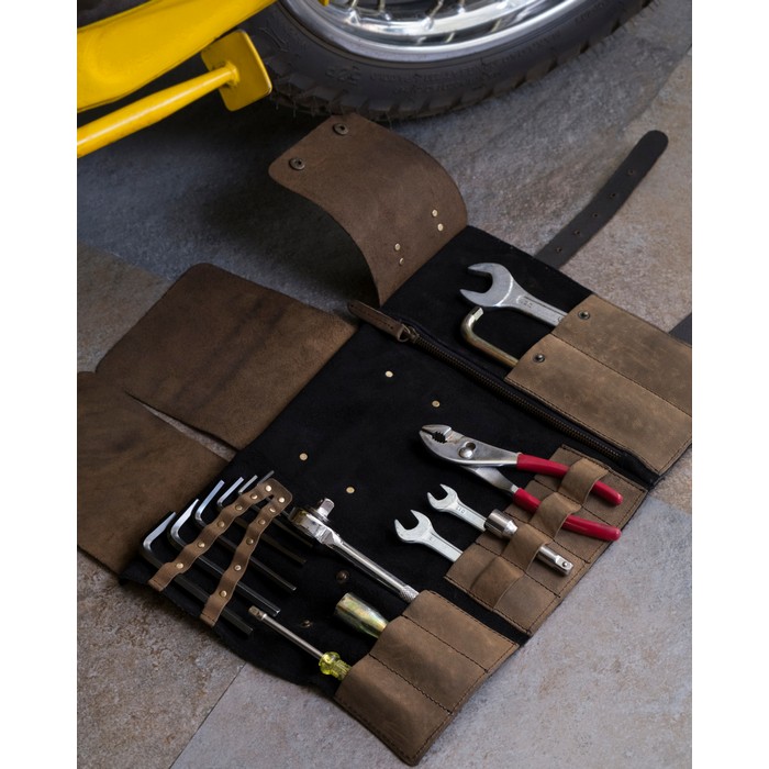 Δερμάτινη Suede Εργαλειοθήκη Tool Roll Black/Tobacco – TRIP MACHINE