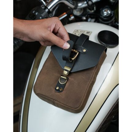 Έξι ισχυρά μαγνήτες, ραμμένα ξεχωριστά στο πίσω μέρος της τσάντας, προσαρμόζονται στο σχήμα του ρεζερβουάρ, εξασφαλίζοντας σταθερό μαγνητικό κράτημα. Για χρήση ως tail bag, περιλαμβάνονται δύο δερμάτινα λουριά — ένα μακρύ και ένα κοντό — για ασφαλή τοποθέτηση κάτω από τη σέλα. Επιπλέον, D-rings προσφέρουν επιλογές για πρόσθετο δέσιμο ή χρήση της τσάντας ως shoulder bag με δικό σου λουρί ώμου.