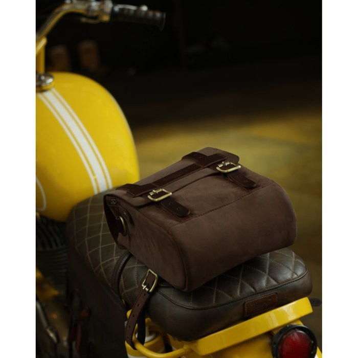 Έξι ισχυρά μαγνήτες, ραμμένα ξεχωριστά στο πίσω μέρος της τσάντας, προσαρμόζονται στο σχήμα του ρεζερβουάρ, εξασφαλίζοντας σταθερό μαγνητικό κράτημα. Για χρήση ως tail bag, περιλαμβάνονται δύο δερμάτινα λουριά — ένα μακρύ και ένα κοντό — για ασφαλή τοποθέτηση κάτω από τη σέλα. Επιπλέον, D-rings προσφέρουν επιλογές για πρόσθετο δέσιμο ή χρήση της τσάντας ως shoulder bag με δικό σου λουρί ώμου.