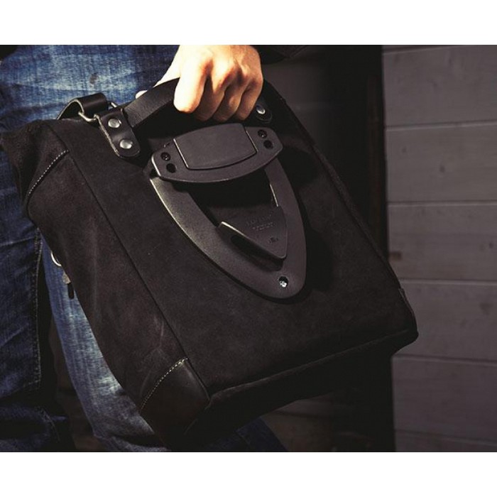 Σάκος φτιαγμένος στο χέρι στην Ιταλία από στιβαρό suede δέρμα κορυφαίας ποιότητας. Κερωμένο, που το καθιστά αδιάβροχο. Προσοχή στη λεπτομέρεια με δερμάτινες λεπτομέριες 3 χιλ., απλό και αγνό όπως τα υλικά με τα οποία κατασκευάστηκε. Συνδέεται γρήγορα με το σύστημα γρήγορης απελευθέρωσης που ήδη περιλαμβάνεται και είναι τοποθετημένο στο πίσω μέρος της τσάντας, το οποίο είναι εξοπλισμένο με κλειδαριά για κλείδωμα στο πλαίσιο. Μπορεί να χωρέσει laptop 15” και είναι εξοπλισμένος με μεγάλη τσέπη με φερμουάρ για τηλέφωνο και έγγραφα.
