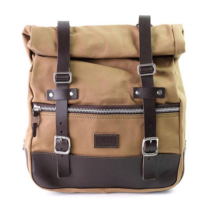 Σάκος φτιαγμένος στο χέρι στην Ιταλία από στιβαρό αδιάβροχο καμβά κορυφαίας ποιότητας. Προσοχή στη λεπτομέρεια με δερμάτινες λεπτομέριες 3 χιλ., απλό και αγνό όπως τα υλικά με τα οποία κατασκευάστηκε. Universal και προσαρμόσιμο σε όλες τις μοτοσυκλέτες, απλά μετακινώντας τη ρύθμιση των κεντρικών λουριών ρυθμίζοντας το ύψος. Το πίσω μέρος της τσάντας είναι εξοπλισμένο με υφασμάτινα άγκιστρα για στερέωση στή μηχανή. Στο μπροστινό μέρος υπάρχει μια μεγάλη τσέπη με φερμουάρ για τηλέφωνο και έγγραφα. Μόλις κατέβαιτε από τη μηχανή, χρησιμοποιώντας ένα από τα κεντρικά λουριά μπορείτε να τον μεταφέρετε στον ώμο. Οι τσάντες γενικής χρήσης είναι κατάλληλες για διαφορετικά μοντέλα μοτοσικλετών. Αυτές οι τσάντες δεν έχουν πλαίσιο ή σύστημα γρήγορης απελευθέρωσης, αλλά πρέπει να είναι σταθερά συνδεδεμένες στη μηχανή. Για μια σωστή εγκατάσταση μπορεί να χρειαστεί να κατασκευάσετε ένα στήριγμα (αν δεν μπορείτε να το κάνετε μόνοι σας, καλό είναι να επικοινωνήσετε με έναν εξειδικευμένο μηχανικό).