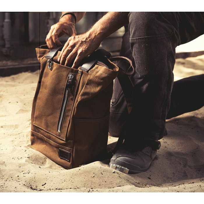 Σακίδιο πλάτης NAMIB 30 Lt φτιαγμένο στο χέρι στην Ιταλία από στιβαρό αδιάβροχο καμβά κορυφαίας ποιότητας. Προσοχή στη λεπτομέρεια με δερμάτινες λεπτομέριες 3 χιλ., απλό και αγνό όπως τα υλικά με τα οποία κατασκευάστηκε. Οι λαβές είναι αναδιπλούμενες και στερεώνονται μέσα στις τσέπες, για να μην φτερουγίζουν με την ταχύτητα. Οι αφαιρούμενοι ιμάντες ώμου που τοποθετούνται στο διπλό πάτο το μεταμορφώνουν σε τσάντα για να πάτε στο γραφείο … υποθέτοντας ότι το αφεντικό σας είναι όσο cool όσο εσείς.