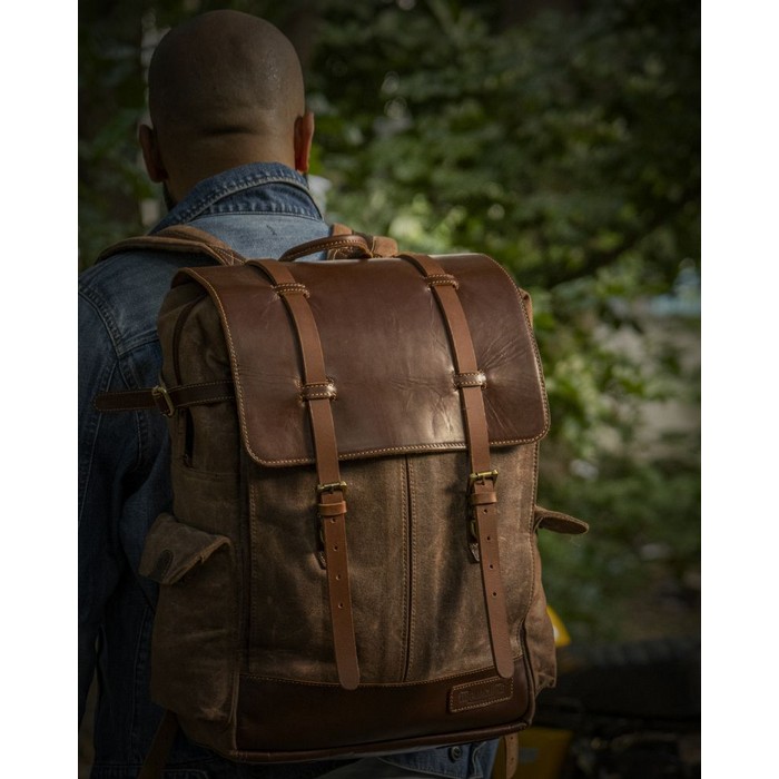 Κατασκευασμένο από heavy duty waxed canvas σε crunch υφή, συνδυασμένο με μαλακό και εύκαμπτο δέρμα, αυτό το backpack προσφέρει αντοχή χωρίς να χάνει σε άνεση. Χειροποίητη ποιότητα, φτιαγμένη για να αντέχει στον χρόνο και στη χρήση.