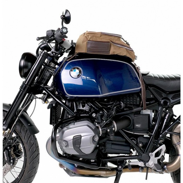 Σάκος ρεζερβουάρ 23 Lt φτιαγμένος στο χέρι στην Ιταλία από στιβαρό αδιάβροχο καμβά κορυφαίας ποιότητας. Προσοχή στη λεπτομέρεια με δερμάτινες λεπτομέριες 3 χιλ., απλό και αγνό όπως τα υλικά με τα οποία κατασκευάστηκε. Συνδέεται με τους παρεχόμενους ιμάντες και γίνεται σακίδιο μόλις αφαιρεθεί από τη μοτοσυκλέτα. Μπορεί να φιλοξενήσει ένα φορητό υπολογιστή 15″ και είναι εξοπλισμένο με μια μεγάλη τσέπη με φερμουάρ για τηλέφωνο και έγγραφα.