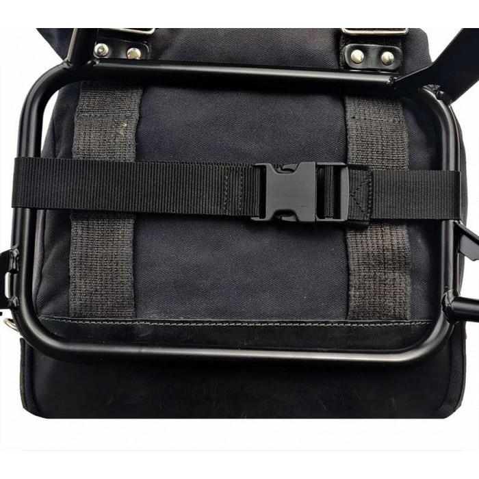 Σετ σάκοι φτιαγμένοι στο χέρι στην Ιταλία από στιβαρό αδιάβροχο καμβά κορυφαίας ποιότητας. Προσοχή στη λεπτομέρεια με δερμάτινες λεπτομέριες 3 χιλ., απλό και αγνό όπως τα υλικά με τα οποία κατασκευάστηκαν. Universal και προσαρμόσιμο σε όλες τις μοτοσυκλέτες, απλά μετακινώντας τη ρύθμιση των κεντρικών λουριών ρυθμίζοντας το ύψος. Το πίσω μέρος της τσάντας είναι εξοπλισμένο με υφασμάτινα άγκιστρα για στερέωση στή μηχανή. Στο μπροστινό μέρος υπάρχει μια μεγάλη τσέπη με φερμουάρ για τηλέφωνο και έγγραφα. Μόλις κατέβαιτε από τη μηχανή, χρησιμοποιώντας ένα από τα κεντρικά λουριά μπορείτε να τον μεταφέρετε στον ώμο. Οι τσάντες γενικής χρήσης είναι κατάλληλες για διαφορετικά μοντέλα μοτοσικλετών. Αυτές οι τσάντες δεν έχουν πλαίσιο ή σύστημα γρήγορης απελευθέρωσης, αλλά πρέπει να είναι σταθερά συνδεδεμένες στη μηχανή. Για μια σωστή εγκατάσταση μπορεί να χρειαστεί να κατασκευάσετε ένα στήριγμα (αν δεν μπορείτε να το κάνετε μόνοι σας, καλό είναι να επικοινωνήσετε με έναν εξειδικευμένο μηχανικό).
