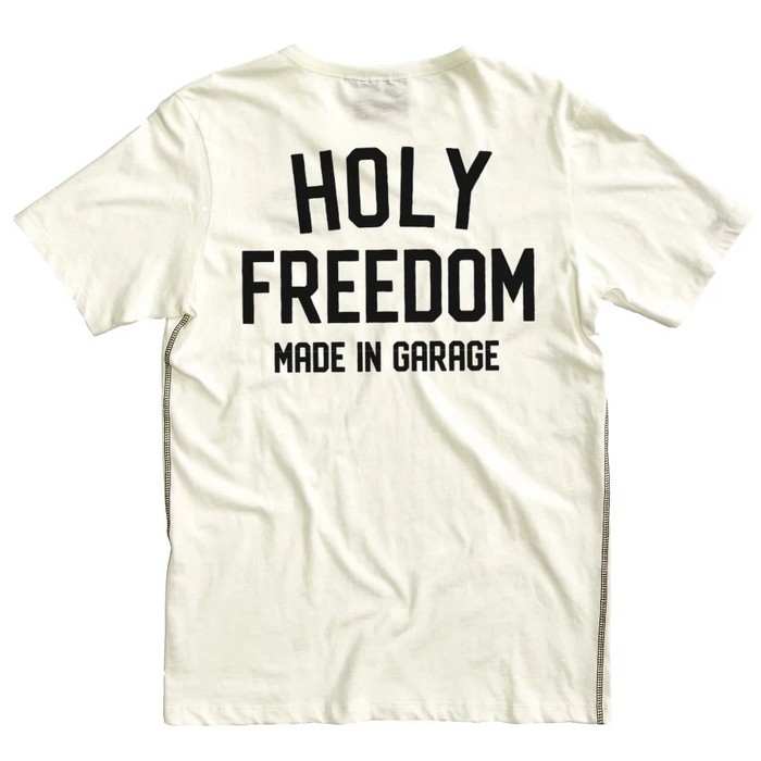Το t-shirt Holy Freedom Crew είναι φτιαγμένο για όσους ζουν τη ζωή στο γκάζι. Κατασκευασμένο εξ ολοκλήρου από 100% ανακυκλωμένο βαμβάκι, προσφέρει απαλή και αναπνεύσιμη αίσθηση, με σεβασμό στο περιβάλλον. Με ελαφρύ ύφασμα 150 g/m², διατηρεί δροσερή και άνετη εφαρμογή τόσο στον δρόμο όσο και στις καθημερινές στιγμές χαλάρωσης. Ο κλασικός σχεδιασμός με στρογγυλή λαιμόκοψη διαθέτει regular fit και άνετη κατασκευή μανικιών για ελευθερία κινήσεων και σταθερή άνεση. Το έντονο τύπωμα στην πλάτη αποτυπώνει ξεκάθαρα το attitude της Holy Freedom: διακριτικό μπροστά, statement πίσω.