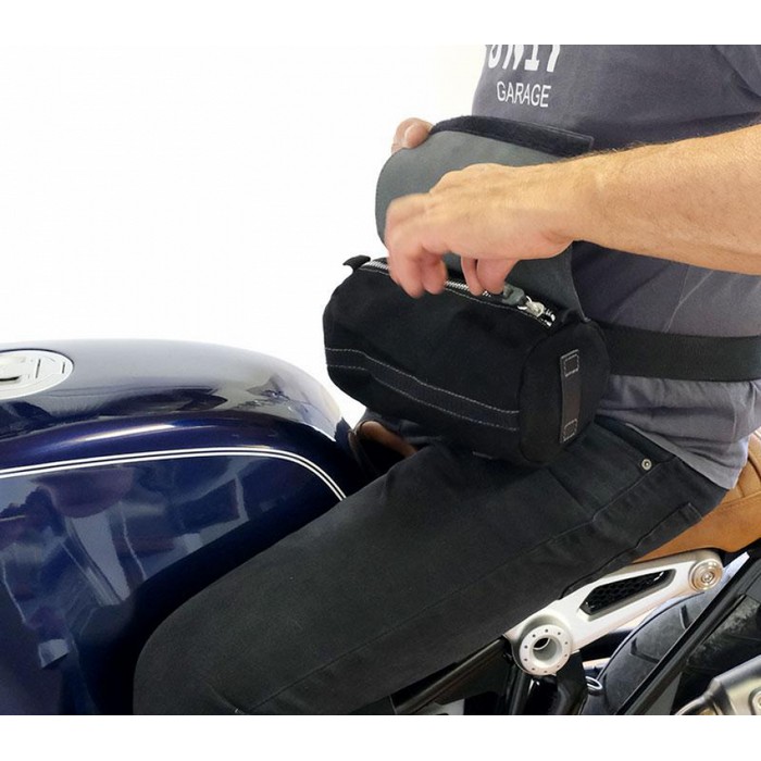 Σε τέλειο στυλ vintage, είναι ευέλικτο και μπορεί να χρησιμοποιηθεί με διάφορους τρόπους, τόσο στερεωμένο στη μηχανή όσο και ως τσαντάκι μέσης χρησιμοποιώντας τις θηλιές στην πίσω περιοχή. Προσοχή και στις πιο μικρές λεπτομέρειες με μπροστινό δερμάτινο καπάκι 3 mm. Έχει θηλιές στο μπροστινό μέρος, πίσω και στα πλαϊνά, εξαιρετικό για εργαλεία, ή ακόμα και ως νεσεσέρ…. εσείς αποφασίζετε!