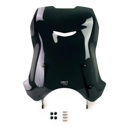 Ολοκληρωμένο με στηρίγματα και βίδες, ταιριάζει τέλεια στο στυλ και τις γραμμές της μηχανής. Κατασκευασμένο από PMMA υλικό πάχους 4mm (ακρυλικό). Τοποθετείται πολύ εύκολα και προσφέρει εξαιρετική αεροδυναμική προστασία. Η μπροστινή περσίδα εξαλείφει τους στροβιλισμούς και ο σωλήνας στήριξης λειτουργεί ως βάση GPS.